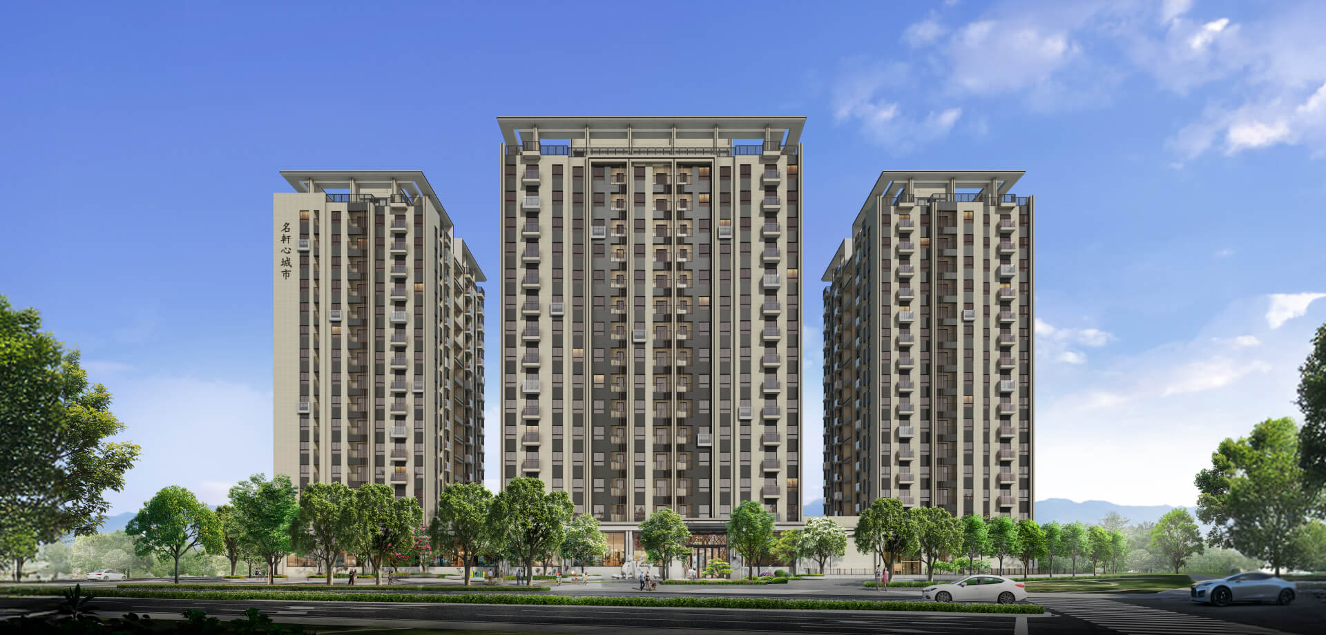 後龍史上最大開發,2570坪角地氣勢座標,「名軒心城市」正以門戶之姿,形塑全新豪華居住樣式,更特別引入光合院建築的設計意念,融入後龍客家園樓的座向美學,挑選有著六月桐花月雪的外牆色系,打造映城融境的建築姿態,不但從此改變區域仰望天際線,更改寫後龍城市角色位階。