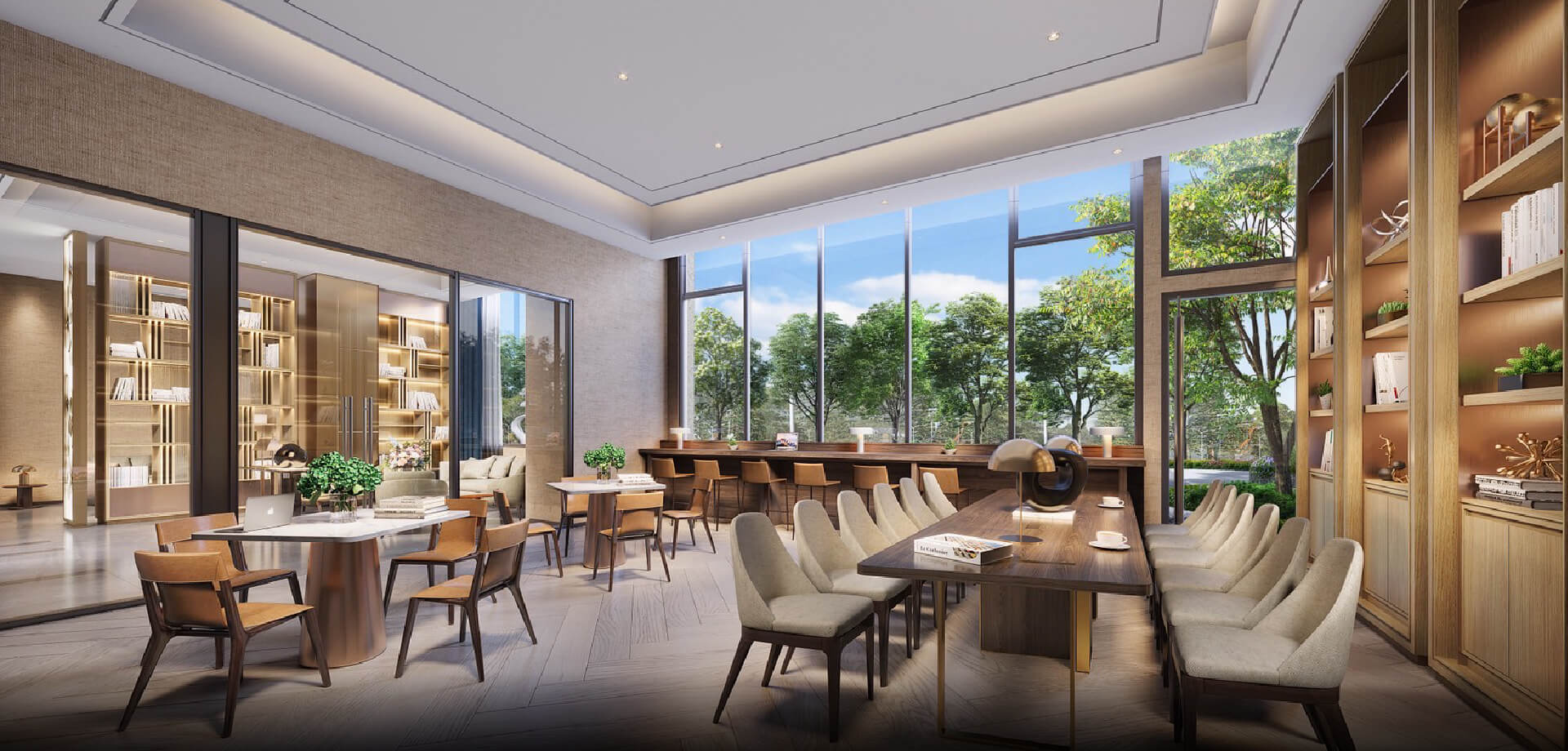 不論男女老少,不管動静需求,「名軒心城市」以超過430坪的豐富主題公設規模,滿足全家不同成員的多種安排,讓您回到家,就是展開另一種時光玩法,空間設計特採擷紙傘、版印、藍染、桐花等在地元素,打造既在地、又國際,既精緻、又溫潤的高端氛圍。