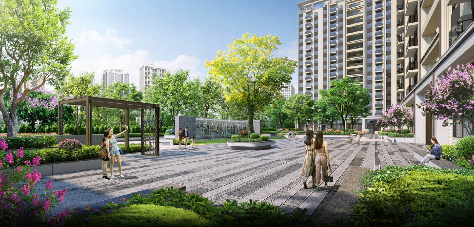 大樹濃蔭,景觀凉亭,微風泳池,層景花園..「名軒心城市」,以魔法森林為繆思,結合自然與裝置藝術,不但傳達美學步道的奢綠意境,也為居住者留下散步權力,更是毛小孩最喜愛的天地;大幅森情,也巧妙形成舒適微氣候,為友善地球的永續,盡一份最大的心力。
